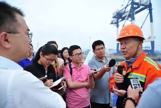 ▲烟台国际码头周波总经理接受记者团采访